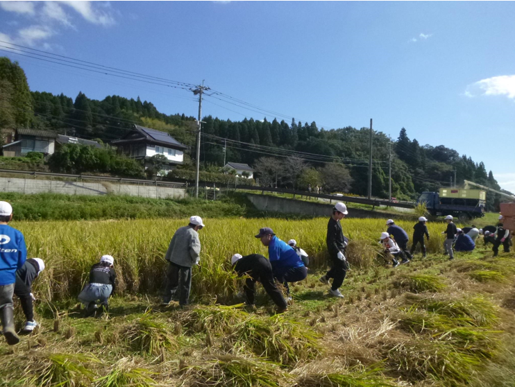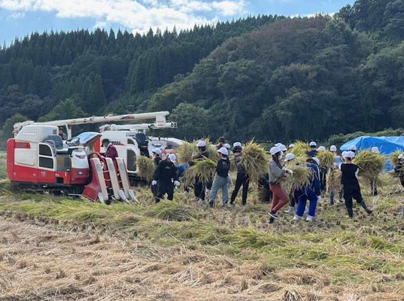 | 秋晴れの10月29日(水)、豊後大野市立大野小学校の5年生が、地域の方々の協力のもと、田んぼで稲刈り体験を行いました。 鎌を持ち、いざ収穫! ![]() 慣れない鎌の扱いに最初はふらつく様子もありましたが、もくもくと稲を刈り取っていきました。 刈り取った稲は、生徒たちが抱えて、農家さんのところまで運び、コンバインで脱穀をしてもらいました。 ![]() 刈り取った稲の束をぎゅっと抱きしめて運ぶ様子 ![]() 綺麗に刈り取れた田んぼ。大きな達成感があります!! |